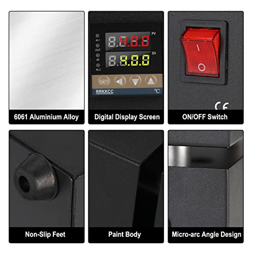 【High Efficiency & Durable】High quality aluminum alloy heating plate, high thermal efficiency, fast heat transfer, uniform temperature. The heat insulation wrapping design around it can prevent burns and make it more secure to use. Temperature Range: 30-400℃.