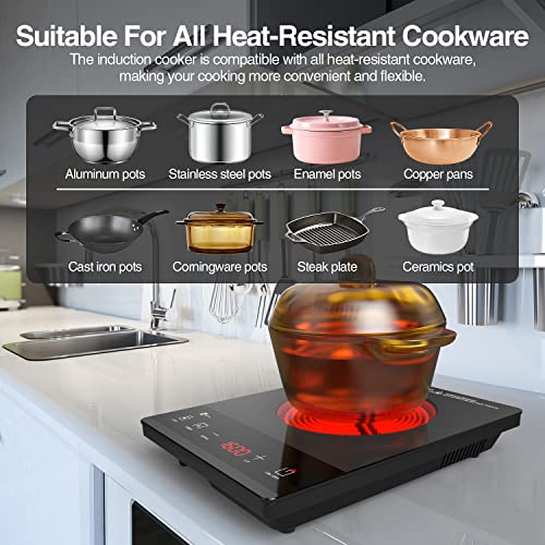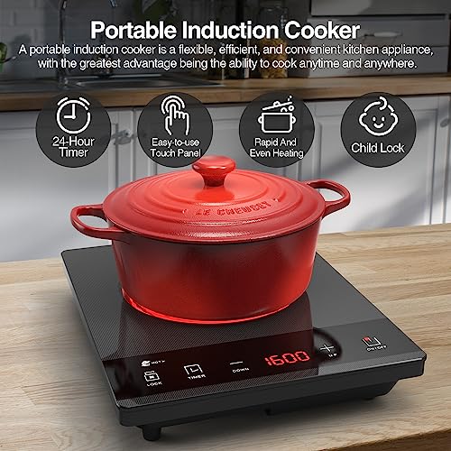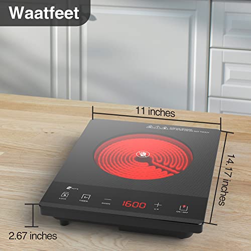 Specification: WAATFEET Electric Cooktop, Single Burner Induction Cooktop, 1600W High Power Portable Induction Cooker with Touch Control Panel, Hot Plate Compatible with All Cookware, Easy to Carry, Fast Heating.Grey
