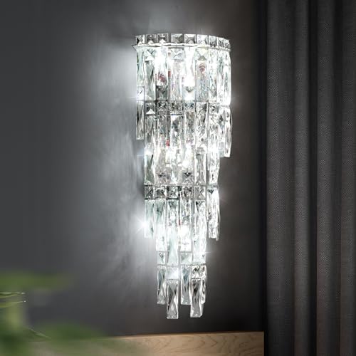 Specification: Wall Sconces,Modern Crystal Wall light Fixtures Indoor Luxury Chrome Wall Lamp,K9 Acrylic Crystal Drops Wall Lamp,Elegant Wall Lighting for Bedroom Bathroom Hallway Living room Mirror Bedside