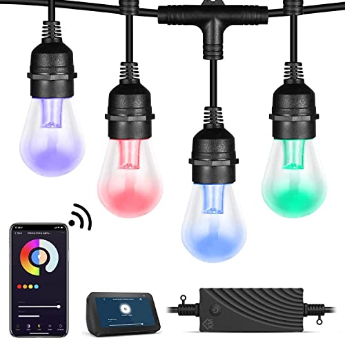 XMCOSY+ Outdoor String Lights, Smart 49Ft Patio Lights RGB, App & WiFi Control Color Changing LED String Lights with Dimmable 15 LED Bulbs, Works with Alexa, IP65 Waterproof, Shatterproof