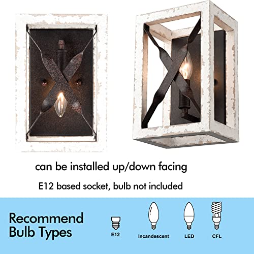 Specification: YUBOLE Farmhouse Wall Light Fixture Rust Wall Sconces Vintage Hallway Wall Lamp with Distressed White Wooden Frame for Bathroom Vanity Bedroom Living Room