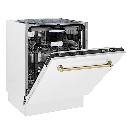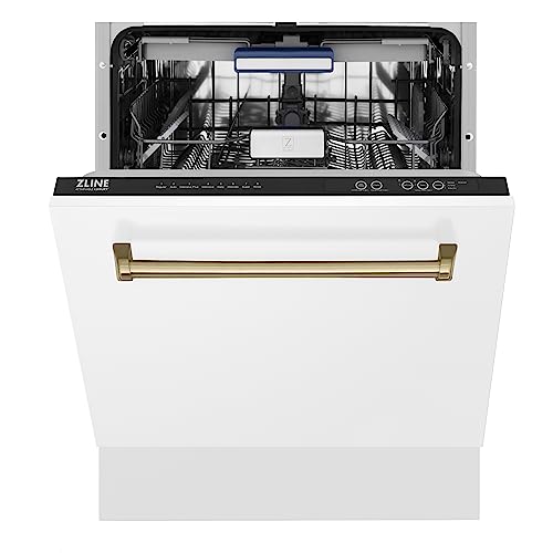 Specification: ZLINE Autograph Edition 24″ 3rd Rack Top Control Tall Tub Dishwasher in White Matte with Champagne Bronze Handle, 51dBa (DWVZ-WM-24-CB)